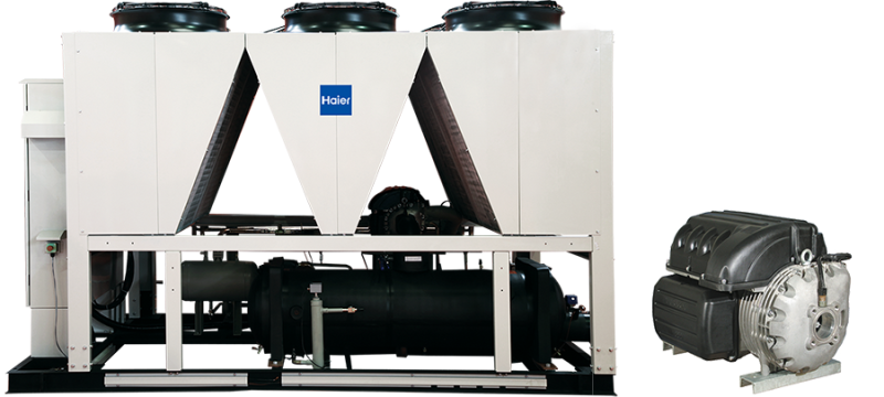 Применение инверторных центробежных турбокомпрессоров без трения (на магнитном подвесе) значительно увеличивает энергоэффективность системы. Так, интегральный сезонный показатель при частичной нагрузке IPLV (показатель эффективности, определяемый в соответствии со стандартом Института кондиционирования воздуха, систем отопления и холодоснабжения AHRI) составляет 6. Это означает, что в течении сезона для производства 6кВт холодильной мощности требуется всего лишь 1кВт. электроэнергии. Показатель IPLV центробежных чиллеров Haier превосходит аналогичный показатель для традиционных чиллеров с винтовыми компрессорами на 50%.