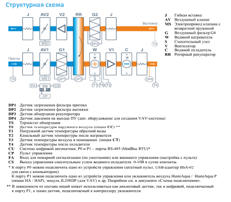 | Совместимое оборудование | Дополнительное оборудование TPD-Gate Шлюз Modbus RTU - Modbus TCP с проводным Ethernet подключением (на базе пульта TPD) JL208DP Модуль на 4 зоны для создания VAV-системы (в комплекте трубка 1м и адаптер) PE63 Внешний электрический преднагреватель для регионов с холодным климатом 63G-F7 Внешняя секция для фильтра тонкой очистки F7 |
