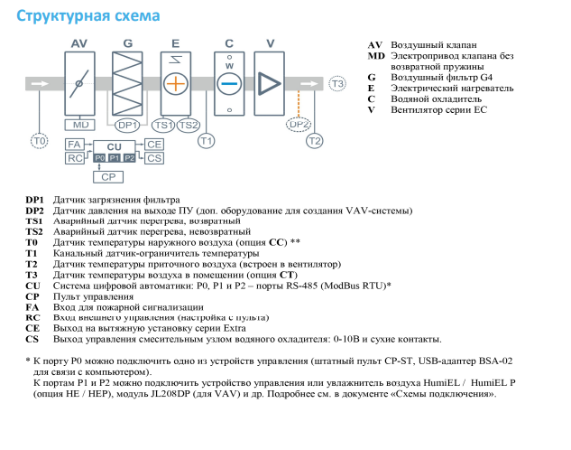 | Совместимые опции | Совместимые опции HEP Управление увлажнителем с электрическим пред- и постнагревателем WEB Удаленное управление вентустановкой через web-интерфейс (штатно) CT Поддержание температуры в помещении по доп. датчику температуры (каскадный регулятор) CC Автоматическое переключение тепло/холод (датчик заказывается отдельно) FM Напольные опоры FM1000 (ножки) для 550–1000 типоразмеров, 2000 Aqua и 2000 Extra |