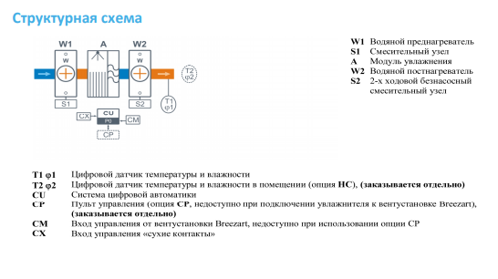 | Совместимые опции | Совместимые опции HC Поддержание влажности по датчику темп. и влажн. (каскадный регулятор), датчик заказывается отдел... BCF Система подачи биоцида CP Управление увлажнителем Breezart с пульта (заказ. отдельно), вкл./выкл. по сухим контактам |